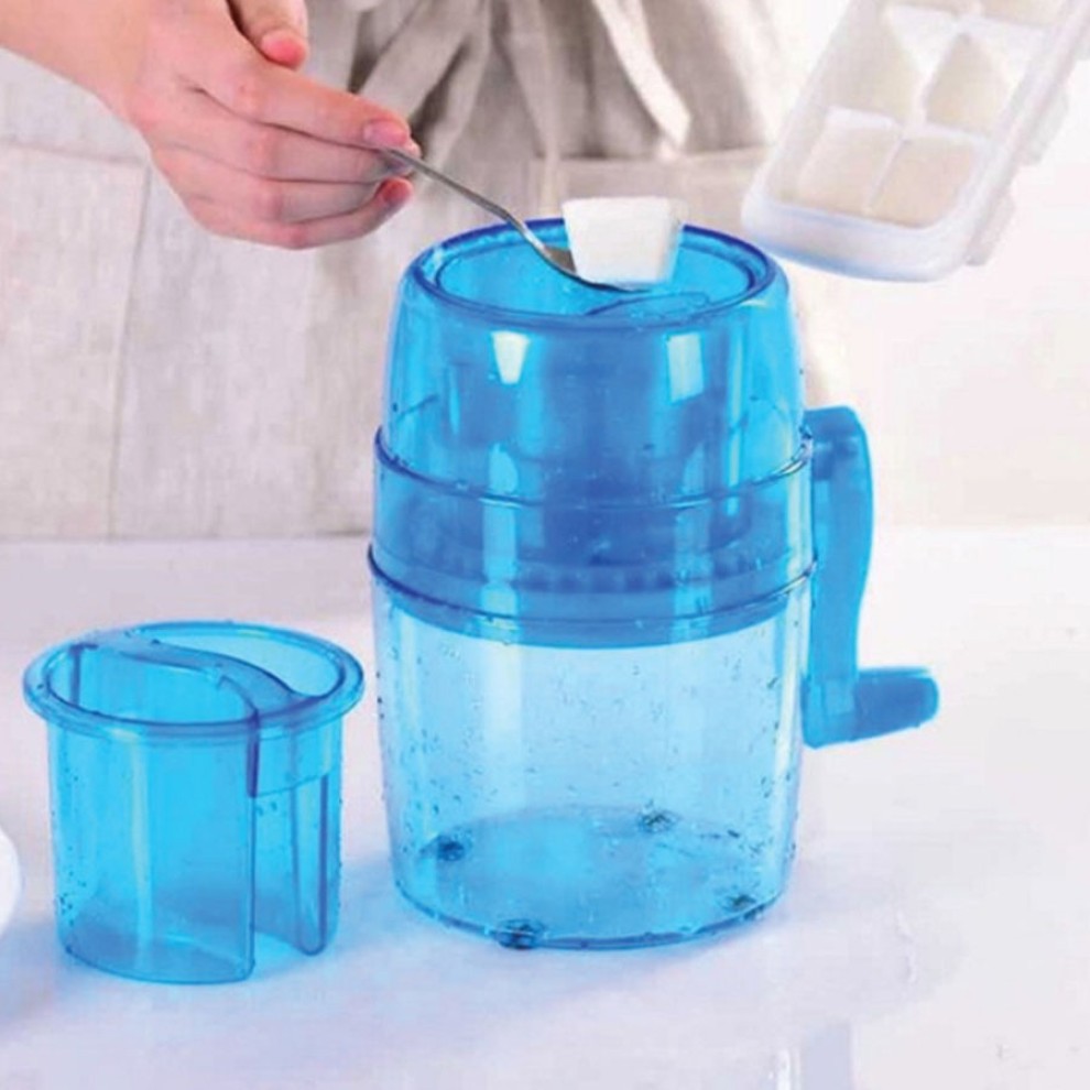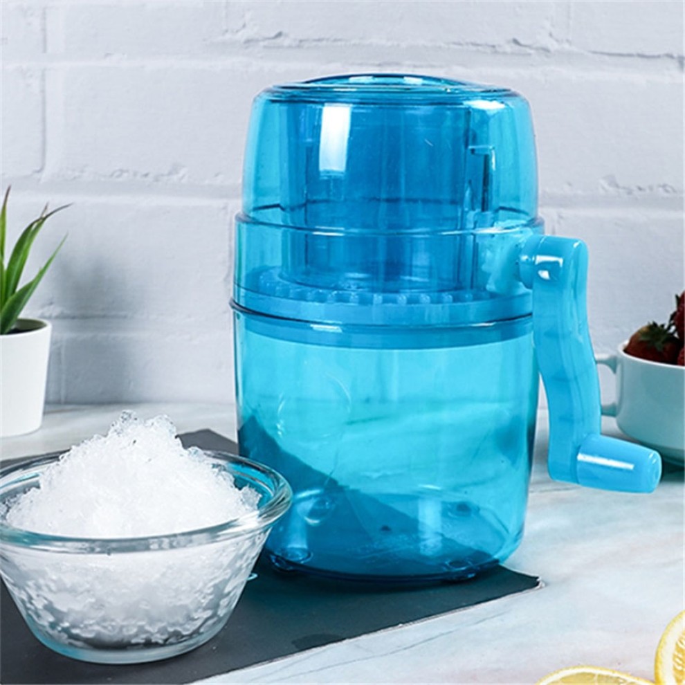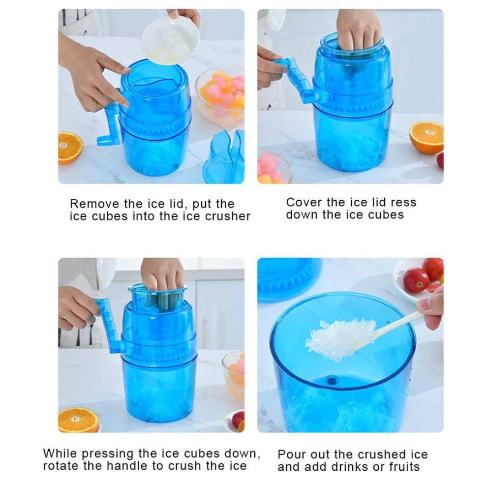 • أزل الغطاء الجليدي ، ضع مكعبات الثلج في كسارة الثلج ، اضغط لأسفل على مكعبات الثلج وأدر المقبض لسحق الثلج.