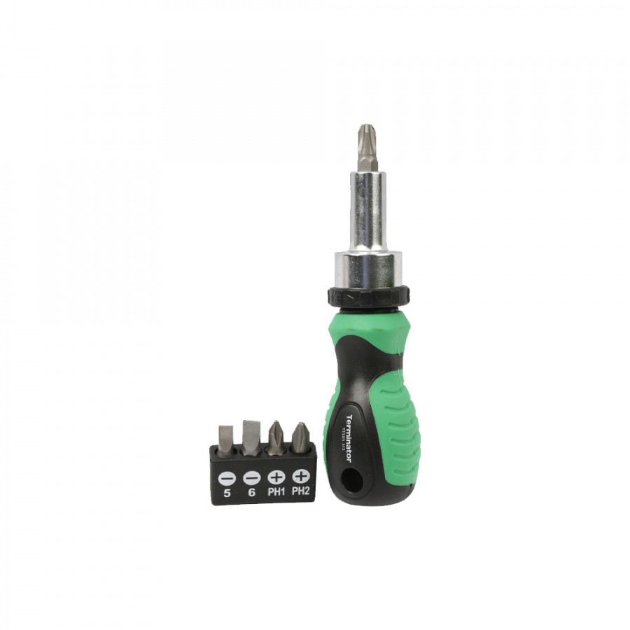 الوصف: طقم مفك براغي 5 في 1 ، مفك براغي بسقاطة قطعة واحدة و 5 قطع بت