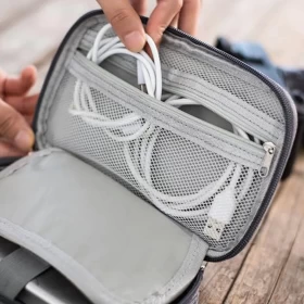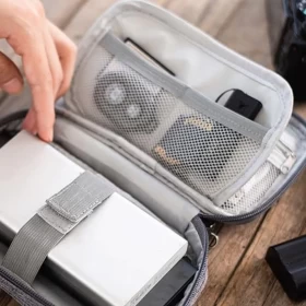 • حقيبة منظم الكابلات ، قطعتان من حافظة منظم أسلاك السفر والإلكترونيات الصغيرة ، وحقيبة تخزين سلك التقنية للكابل ، والشاحن ، والهاتف ، و USB ، وبطاقة SD ، مع 5 قطع من روابط الكابلات