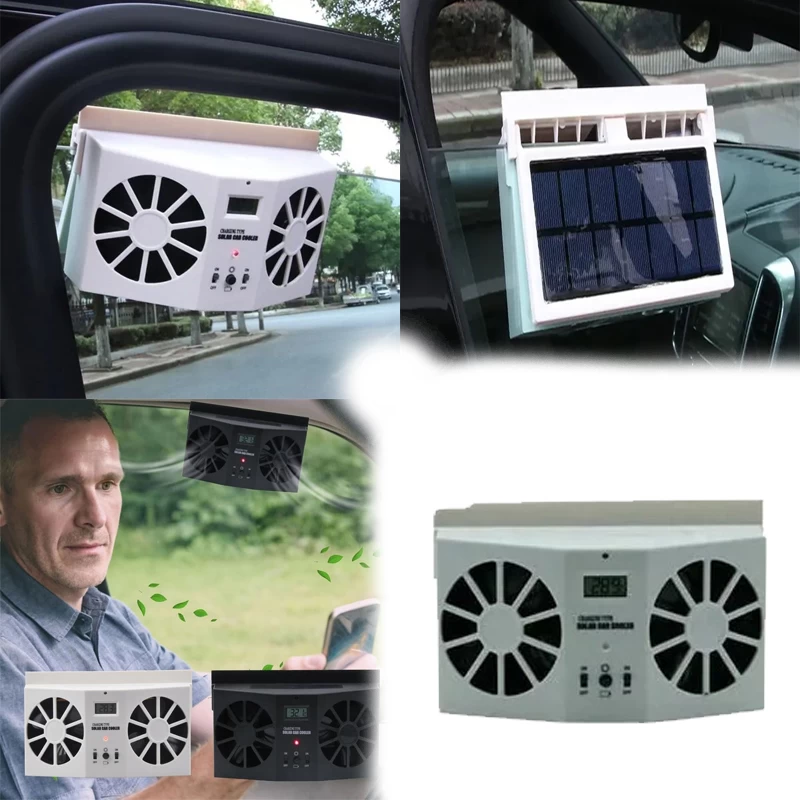 مروحة مزدوجة تعمل بالطاقة الشمسية، تساعد علي تخفيف درجة الحرارة في السيارة لتستمتع بصيفك في كل أوقاته.