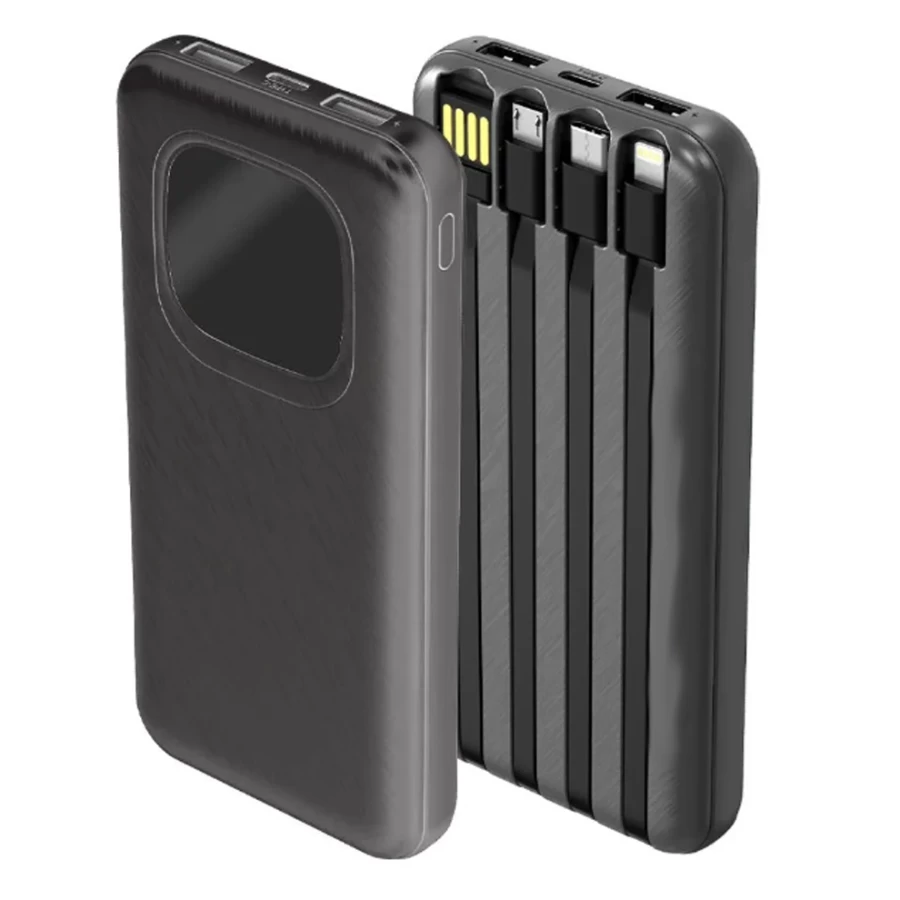 - تحتوي  البطارية على 4 كيبلات مدمجة (lightning، Type-C، Micro-USB- USB-A)