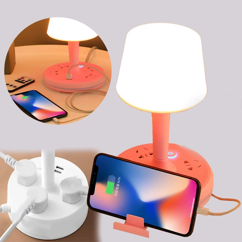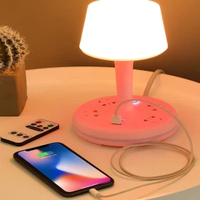 مصباح مكتبي متعدد الوظائف مع منفذين شحن يو اس بي و4 منافذ طاقة