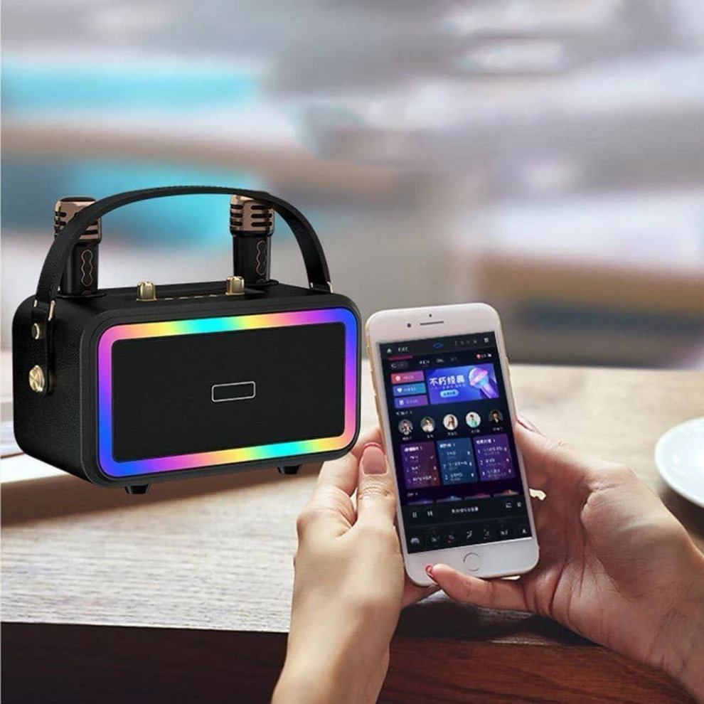 • إضاءة كاريوكي ملونة: خرزات ضوئية متعددة مستقلة، مجموعة متنوعة من تأثيرات الإضاءة الغنائية RGB، الأضواء تقفز مع الموسيقى لتغني إحساسًا أكثر بالجو.