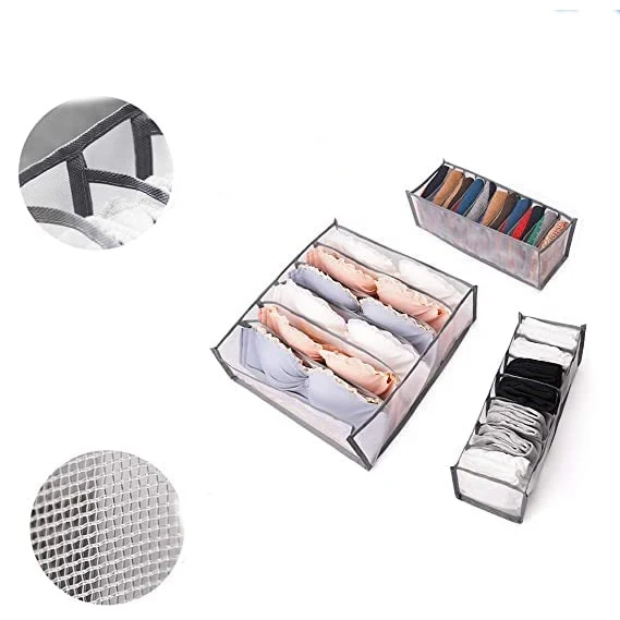 مجموعة من 3 منظم قابل للطي لحمالة الصدر والملابس الداخلية والجوارب | منظم تخزين درج خزانة الملابس للملابس الداخلية | خزانة قابلة للطي لتخزين الملابس الداخلية لخزانة الملابس، الخزانة - أسود