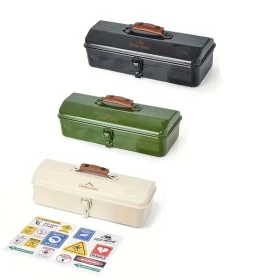 صندوق معدني أنيق (أخضر أو بيج) بحجم 36 × 15 × 11 سم