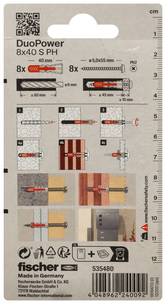 فيشر دو باور 8 × 40 S PH K NV قابس / برغي