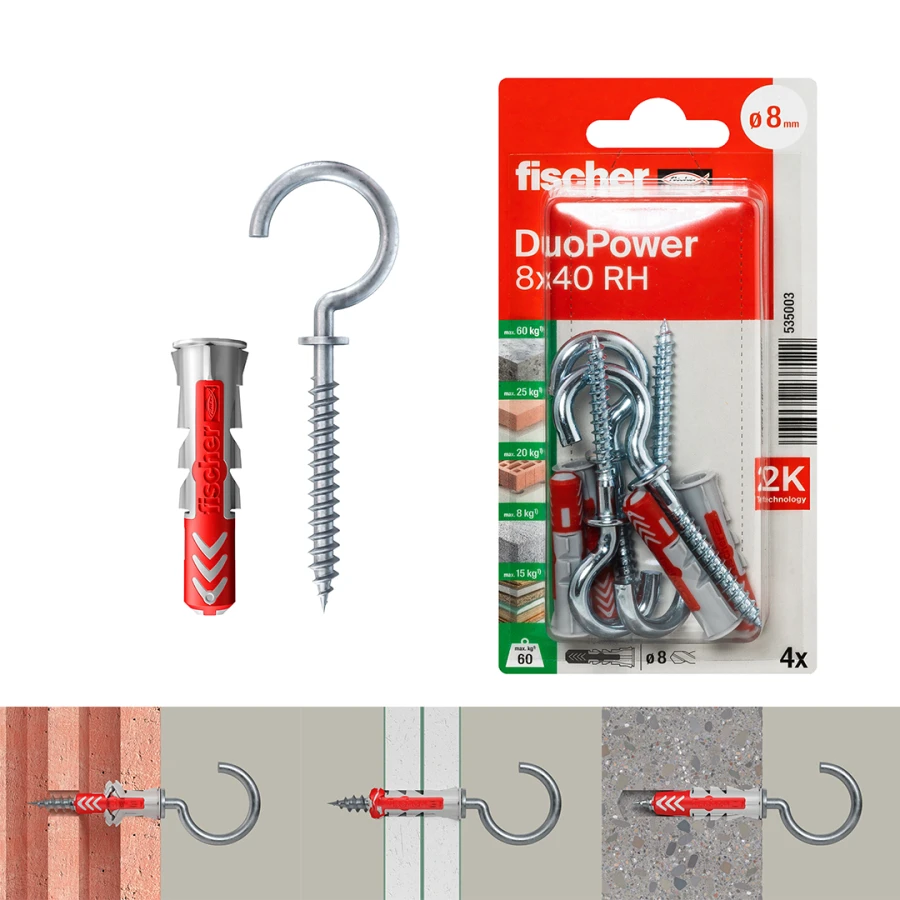 4 قطع من قابس فيشر ديوباور 8 × 40 RH K NV + خطاف دائري