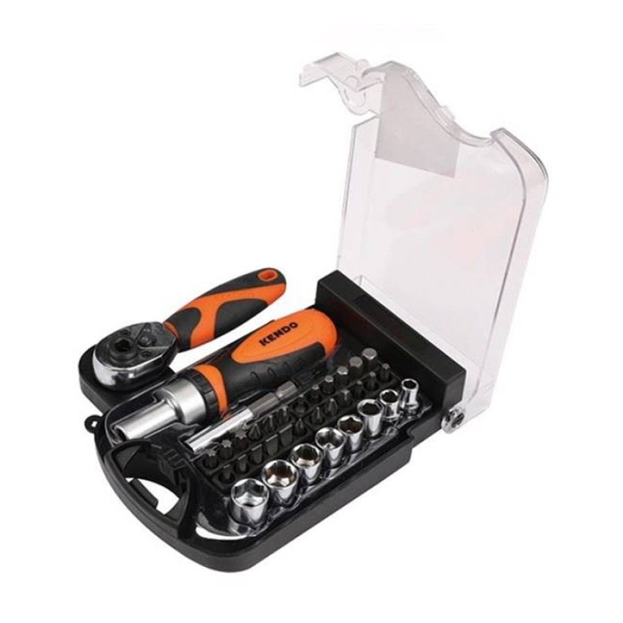 Kendo 35Pcs Bits & Sockets Set - 20548 Repair Tool Kit: Ratchet Torque Wrench, Spanner, Screwdriver, Socket Set Combo - Perfect For Bicycle & Auto Repairing!