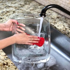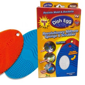 Dish Egg comes with two sets of dual sided flexible nanotube sponge scrubbers. One Blue and one Red. Designed to clean away stubborn greasy messes with ease while also keeping cookware scratch free.