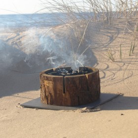 The EcoGrill is a Nordic way of burning tree stumps effectively now used for cooking, heating and smoking food.
