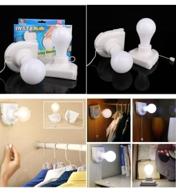 Just peel and stick base to surface, slide in the bulb and pull cord to turn on / off