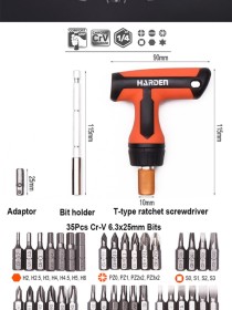 1pc T-type ratchet screwdriver with quick release bits function