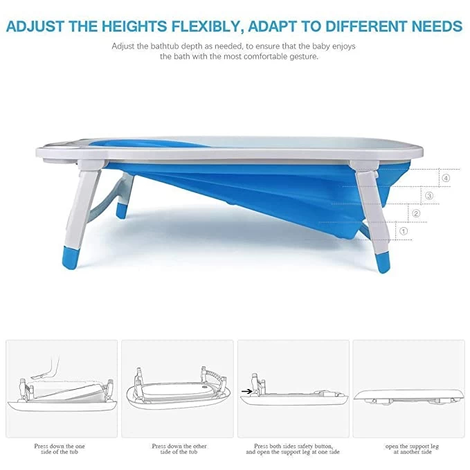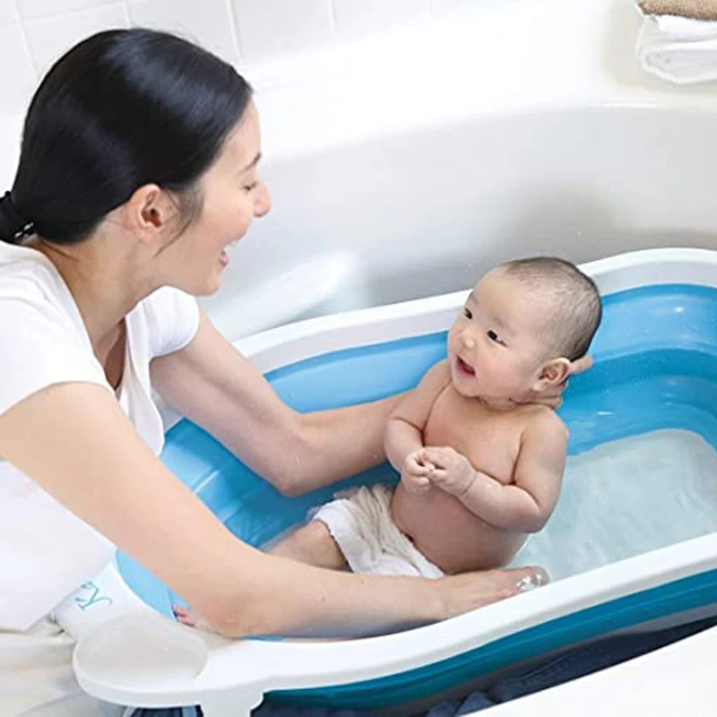 Baby foldable bathtubs can be used in 2 ways and folded up for easy storage 1. Bathtub positioned aside for new born 2. Bathtub positioned straight for babies aged 6 months and up