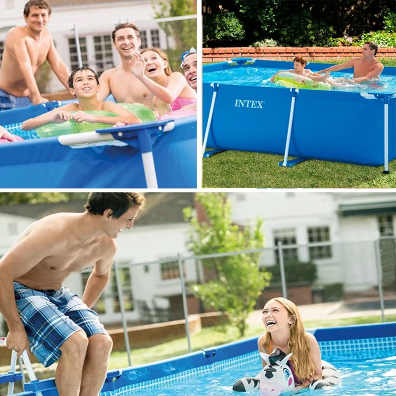 Intex Rectangular Frame Pool without Pump is a fantastic framed pool from Intex is perfect for the back garden! . The pool is a solid blue colour. These colourful and easy to assemble sturdy pools are a great size and depth for the whole family.. It is ready for water in 30 minutes. This rectangular frame pool is not only easy to set up but is fun for the whole family too.