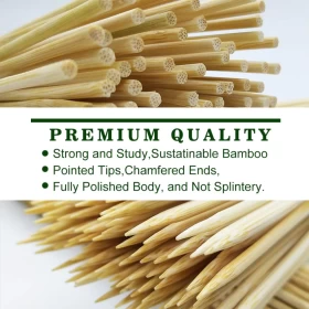 These Bamboo Wooden BBQ Skewers are perfect for grilling your favorite meats, vegetables, and fruits. Made from high-quality bamboo wood, these skewers are durable and eco-friendly. Each bag has 100 skewers.