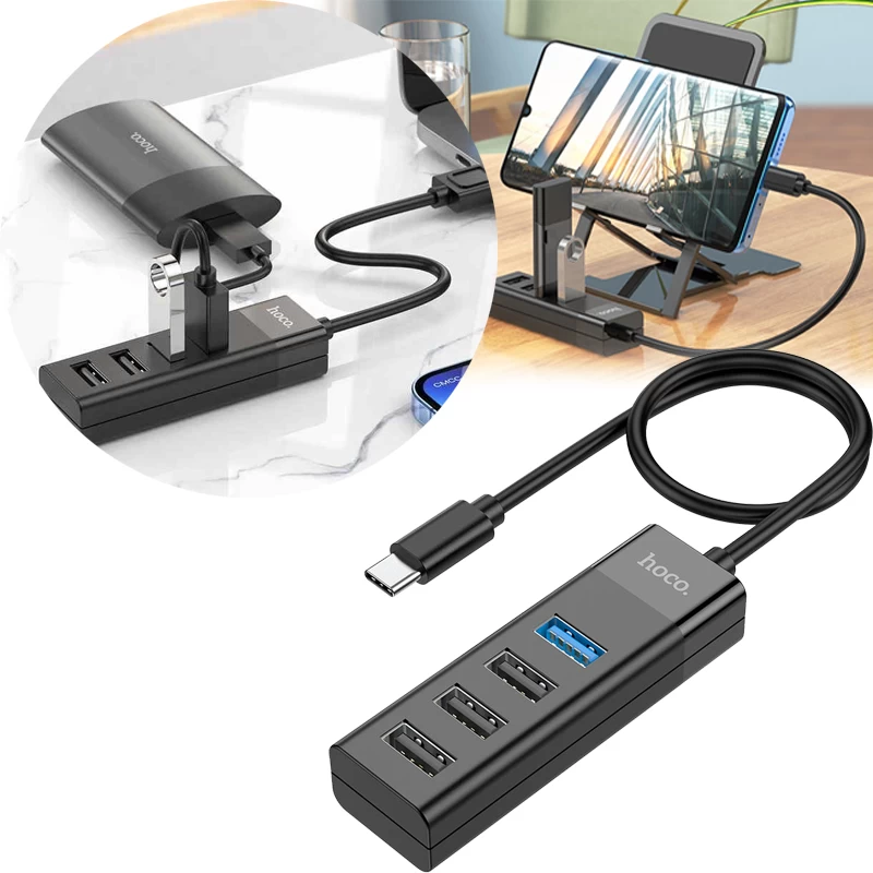 Hoco 4-in-1 USB Hub Converter (USB-A to USB 3.0 + USB 2.0 x 3) - Black