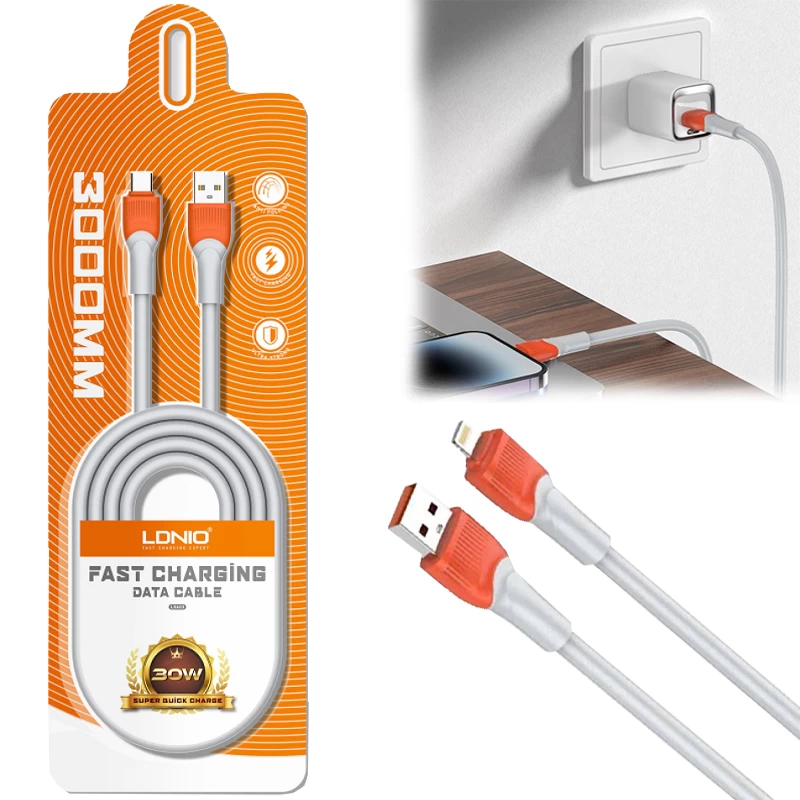 Featuring 30W fast charging, LDNIO Cable is a versatile USB 3.0 data cable. The cable is compatible with iPhones and features a thick 30W thick design with durable and wear-resistant TPE material, which makes the cable more durable, sturdy and lasts longer.