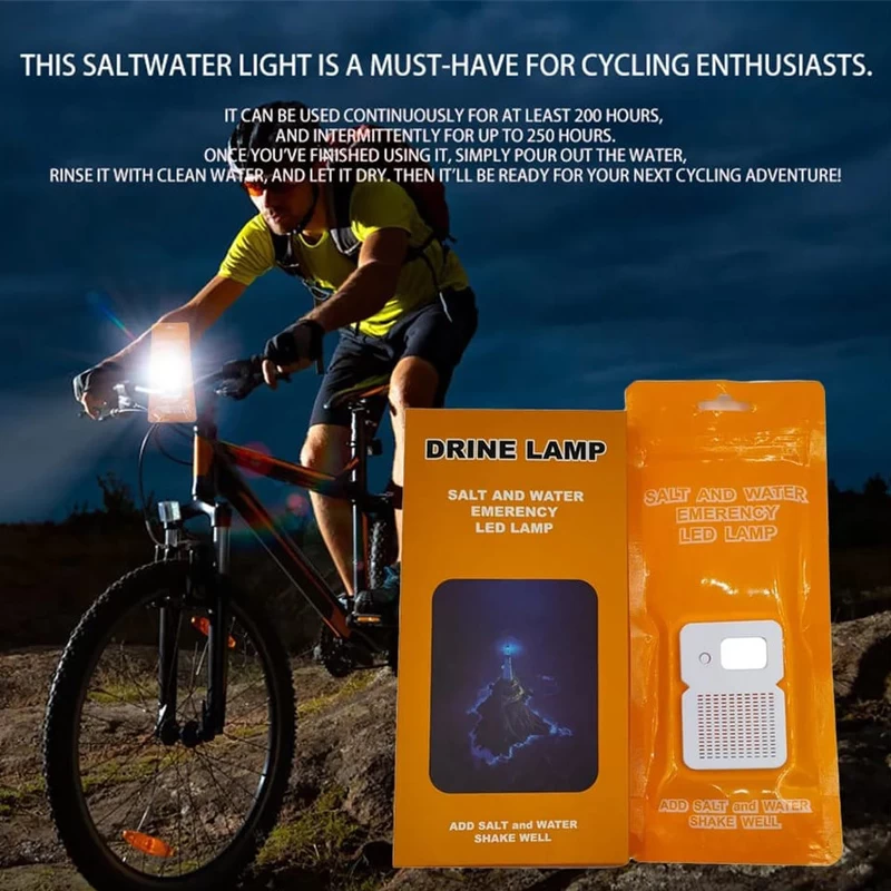 A unique and innovative emergency lamp that uses salt water as its power source. Simply add salt and water to the lamp, and it will generate light for up to 250 hours. The lamp is perfect for camping, hiking, fishing, or any other situation where you need a reliable light source.