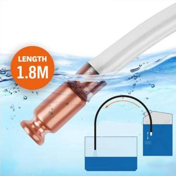 Description: Silverline Shake Siphon Easy to use self-priming siphon Action siphon that will transfer up to 3.5 gallons of liquid per minute Safely pumps water Fuels paints and solvents More information: The built-in pump allows you to siphon liquids from one container to another without having to end up with a mouthful of gasoline. ...or worse to start the siphoning, place the end of the hose with the brass pump on it in the fluid and move up and down vigorously......yeah like that.....now stop laughing 4.8 feet clear hose allows you to view what Transported by anti-static hose and pump for safe transfer of flammable liquids Attention: Do not use on salt water or corrosive chemicals Copper Specification: Color: Clear Size: 148cm