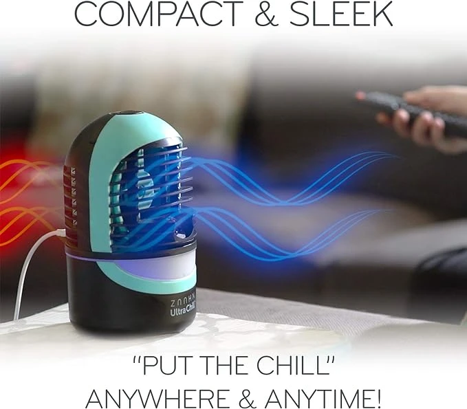 PERSONAL CHILL ZONE: The revolutionary Zaahn Ultra Chill features a Pizoelectric Ultrasonic Transducer that vibrates up to 108,000 times a second. This creates Micro-Droplets, which are vaporized into the air to create a perfectly cooled area just for you.