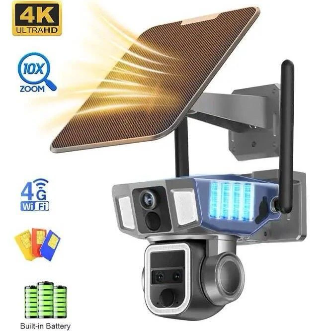 Solar Security Dual Camera Wireless Triple Lens 2.4g 8MP