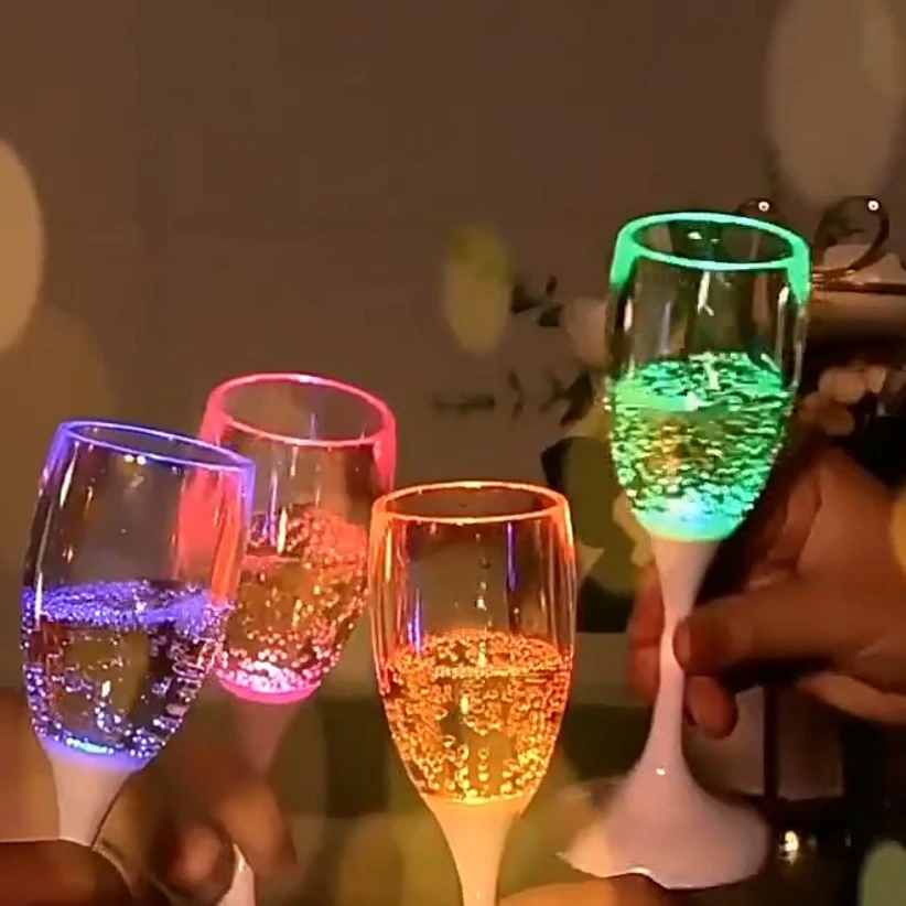 Liquid Light Up Colour Changing Wine Champagne Glass Plastic Reusable
