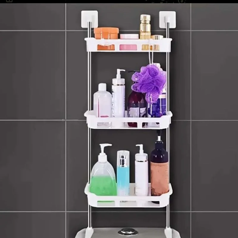 Vintage Style 3-Tier Freestanding Bathroom Floating Shelves, Plastic Storage Organizer with Stainless Steel Frame, White Finish - Bathroom Space Saver Over