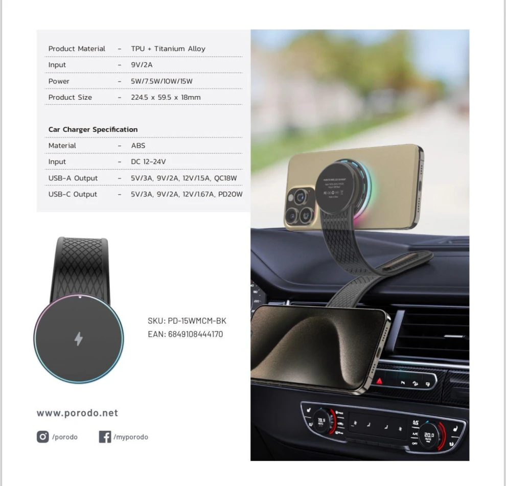 -Car Charger USB-A Output: 5V/3A, 9V/2A, 12V/1.5A, QC18W