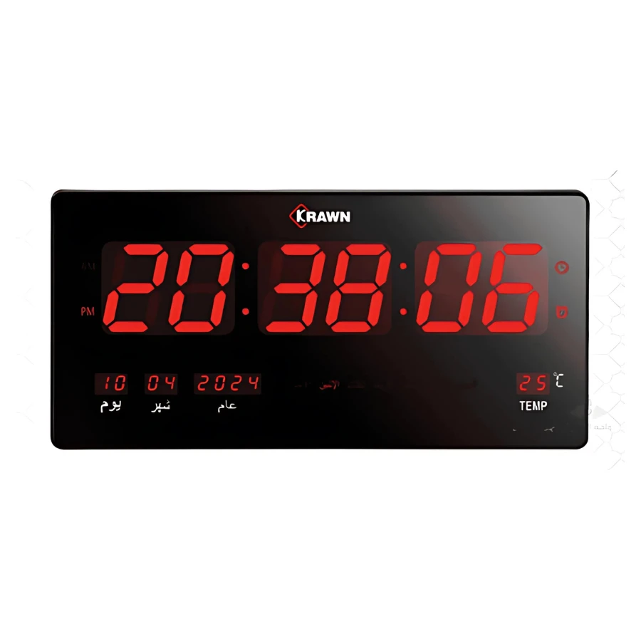 Upgrade your space with this modern high-definition digital wall clock. Perfect for homes, offices, schools, and meeting rooms, it displays time, date, and temperature with exceptional accuracy. The sleek black frame adds a touch of elegance, while flexible installation options let you mount it on the wall or place it on a desk. Featuring plug-and-play ease and a backup battery to save settings during power outages.