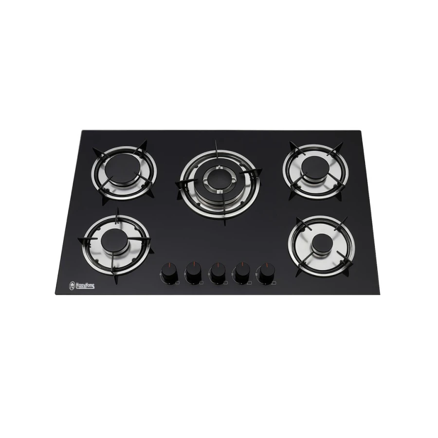 HappyHome 5-Burner Built-In Gas Stove – Black Glass, Auto Ignition