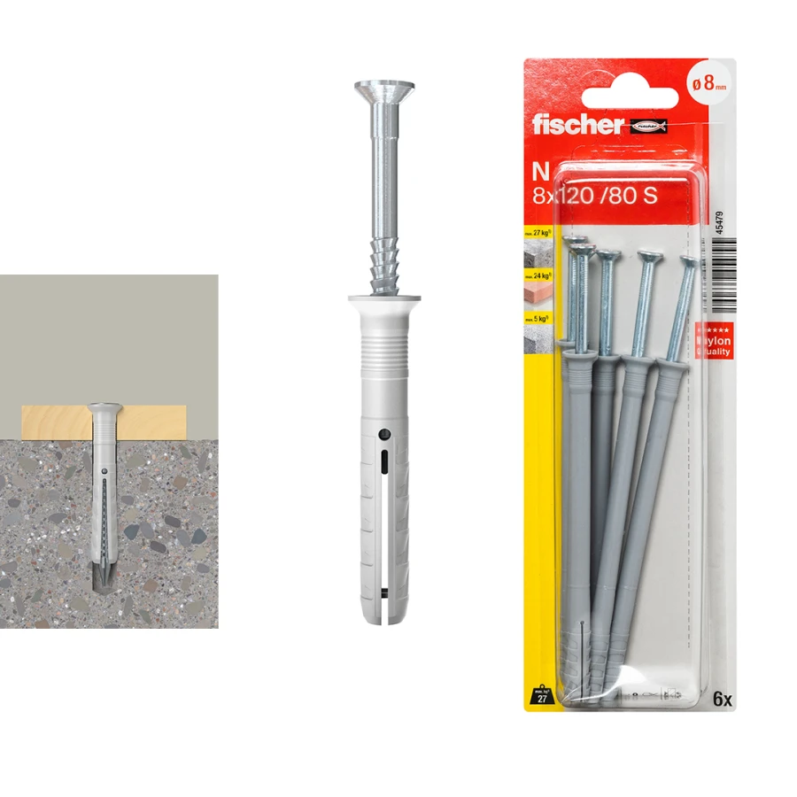Fischer N 8 x 120/80 S K NV Plug with counter sunk Screw 6pcs