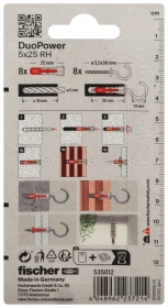 Fischer DUOPOWER 5 X 25 RH K NV Plug + Round Hook 8pcs